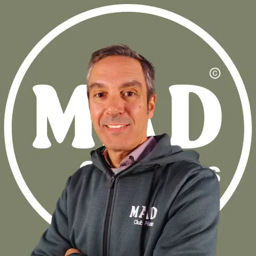 De pequeño fue nadador, luego ciclista y corredor… tanto, que acabó haciendo un Ironman. Friki del pulsómetro y de la tecnología, es el cerebro digital del Club. También es quien te recibe en MAD Club Pilates y se encarga de cuidarte con detalles, dulces y bombones.
