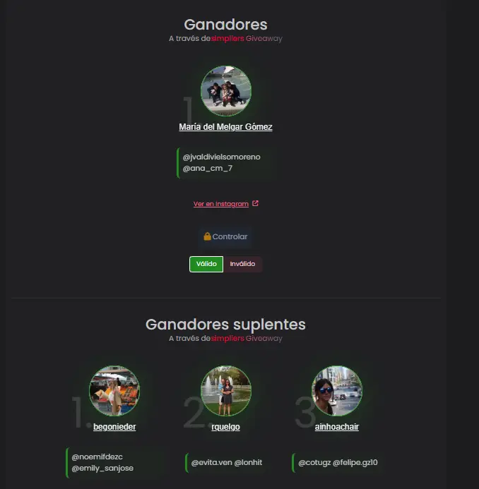 Instagram no patrocina, avala ni administra este sorteo, ni está asociado al mismo.